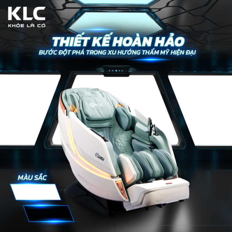 Ghế massage KLC K7979 được đánh giá là “bước đột phá mới trong xu hướng thẩm mỹ hiện đại”. Ghế được thương hiệu KLC ra mắt vào cuối năm 2021, có thiết kế hoàn hảo và sang trọng, hệ thống đèn LED tinh tế 2 bên hông cùng tông màu trắng, đen hiện đại. KLC K7979 sẽ là lựa chọn vô cùng hợp lý cho không gian sống đẳng cấp của gia đình bạn.