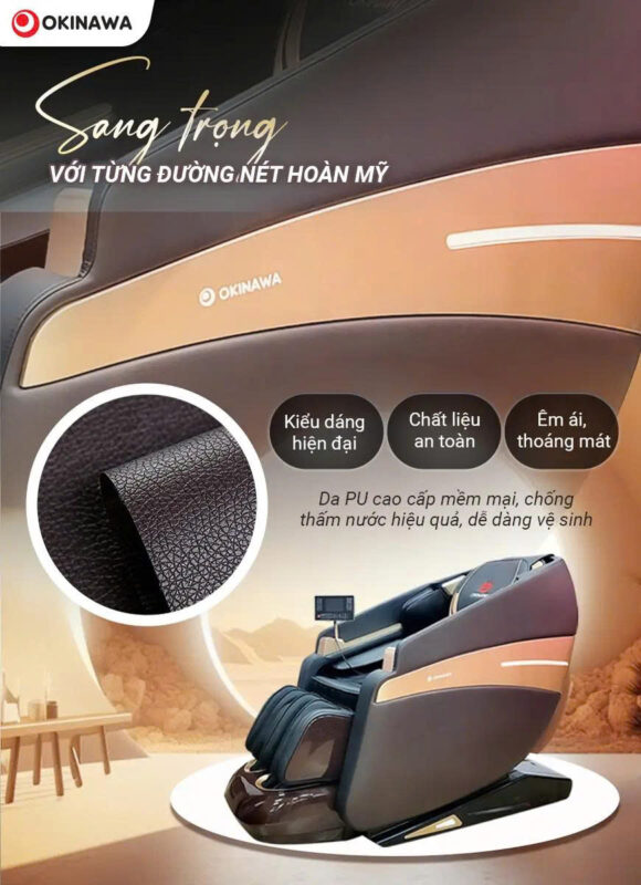 - Với thiết kế độc đáo và đường nét hiện đại hiện đại, ghế masage Okinawa OS-398 không chỉ là một chiếc ghế massage mà còn là một tác phẩm nghệ thuật, đây còn là sản phẩm giúp làm tôn lên không gian sống của gia đình bạn.