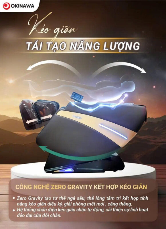 Ghế massage Okinawa OS-398 tích hợp tính năng zero gravity – chế độ kéo giãn nhẹ nhàng, giảm áp lực lên cột sống và cải thiện độ linh hoạt của cơ thể. Với những người thường xuyên vận động hoặc bị căng cơ sẽ đặc biệt yêu thích tính năng này nhờ khả năng giảm mệt mỏi và tăng cường sự dẻo dai.